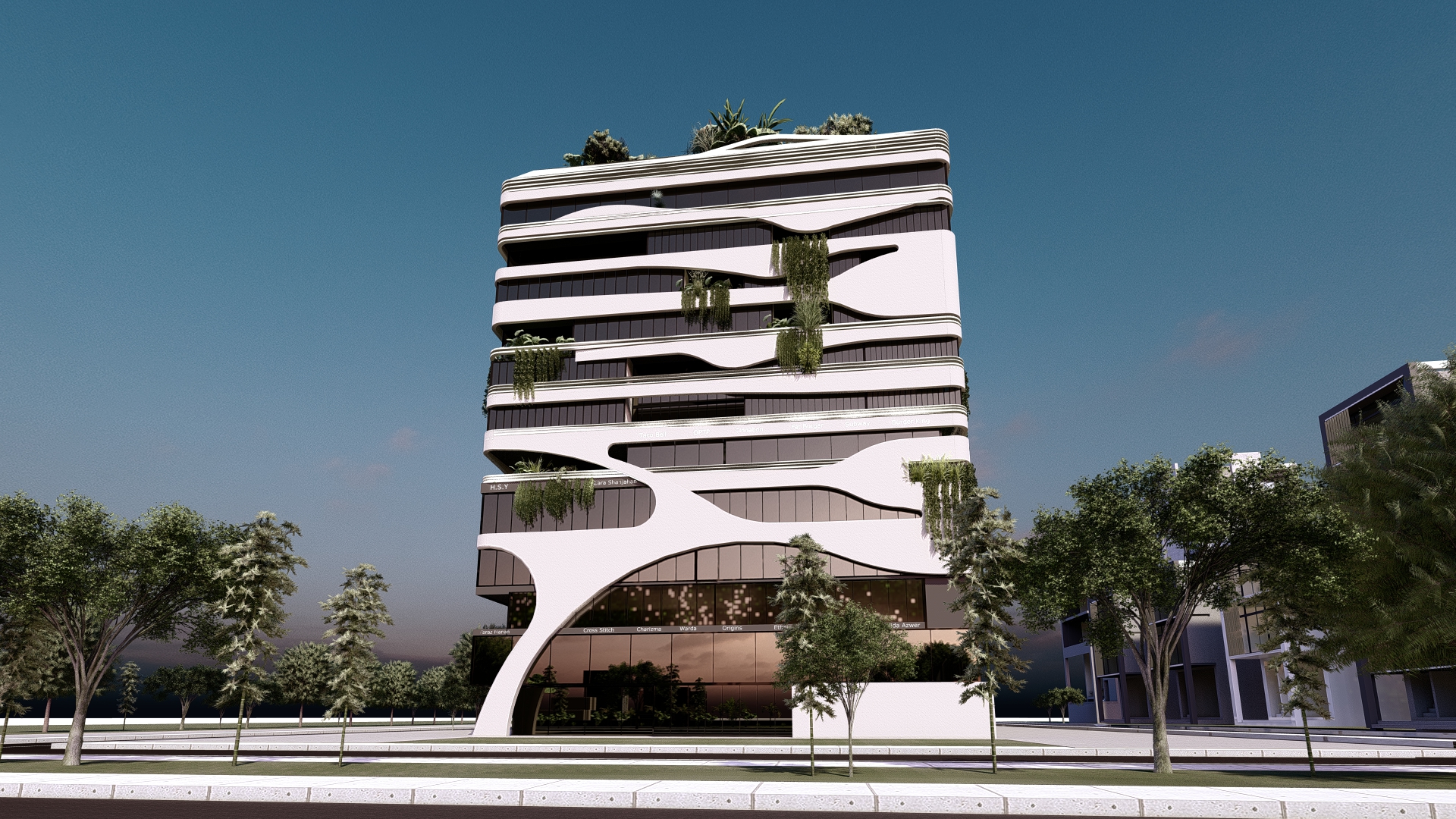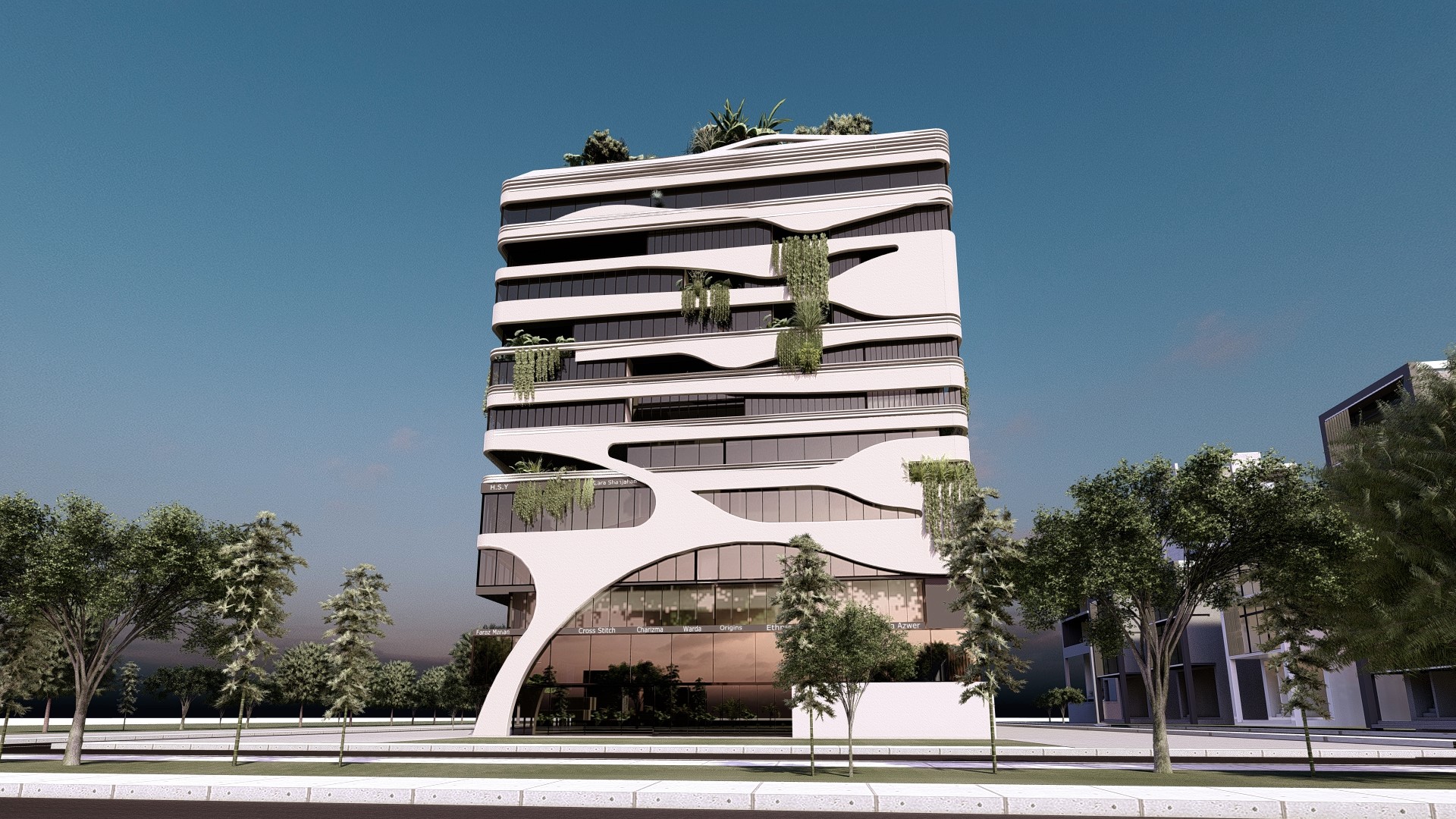 Rising with elegance and innovation, this Ground+12 tower designed by Ora Architects redefines urban architecture. The façade features organic, flowing lines with integrated green pockets, creating harmony between futuristic design and sustainable living. This dynamic structure is crafted to house modern residential units and commercial spaces, optimized for light, ventilation, and spatial efficiency. With its iconic curves and vertical landscaping, the building stands as a symbol of progress, sophistication, and eco-conscious urban growth.